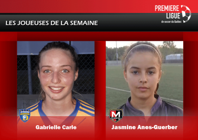 Gabrielle Carle (Dynamo de Québec) et Jasmine Anes-Guerber (CS Monteuil) sont les joueuses de la semaine.