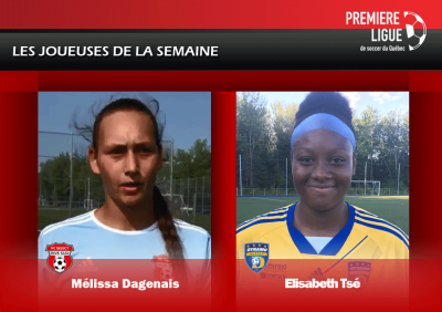 Mélissa Dagenais (FC Sélect Rive-Sud) et Elisabeth Tsé (Dynamo de Québec) sont les joueuses de cette (dernière) semaine.