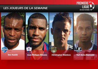 Dex Kaniki (CS Fabrose), Jean-Philippe Étienne (FC Lanaudière), Christopher Malekos (FC Gatineau) et Nafi Dicko-Raynauld (FC Gatineau) sont les joueurs de la semaine.