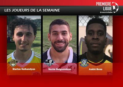 Martun Nalbandyan (FC Gatineau), Nazim Belguendouz (AS Blainville) et André Bona (CS Longueuil) sont les joueurs de la semaine.