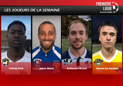 Ludwig Amla (CS Saint-Hubert), Julien Obriot (CS Mont-Royal Outremont), Guillaume Rivard (AS Blainville) et Vincent Cyr Gauthier (FC Gatineau) sont les joueurs de la semaine.