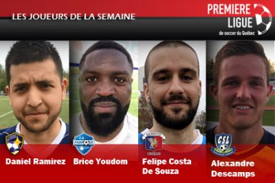 Daniel Ramirez (CS Saint-Hubert), Brice Youdom (CS Fabrose), Felipe Costa De Souza (CS Mont-Royal Outremont) et Alexandre Descamps (CS Longueuil) sont les quatre joueurs de la semaine.